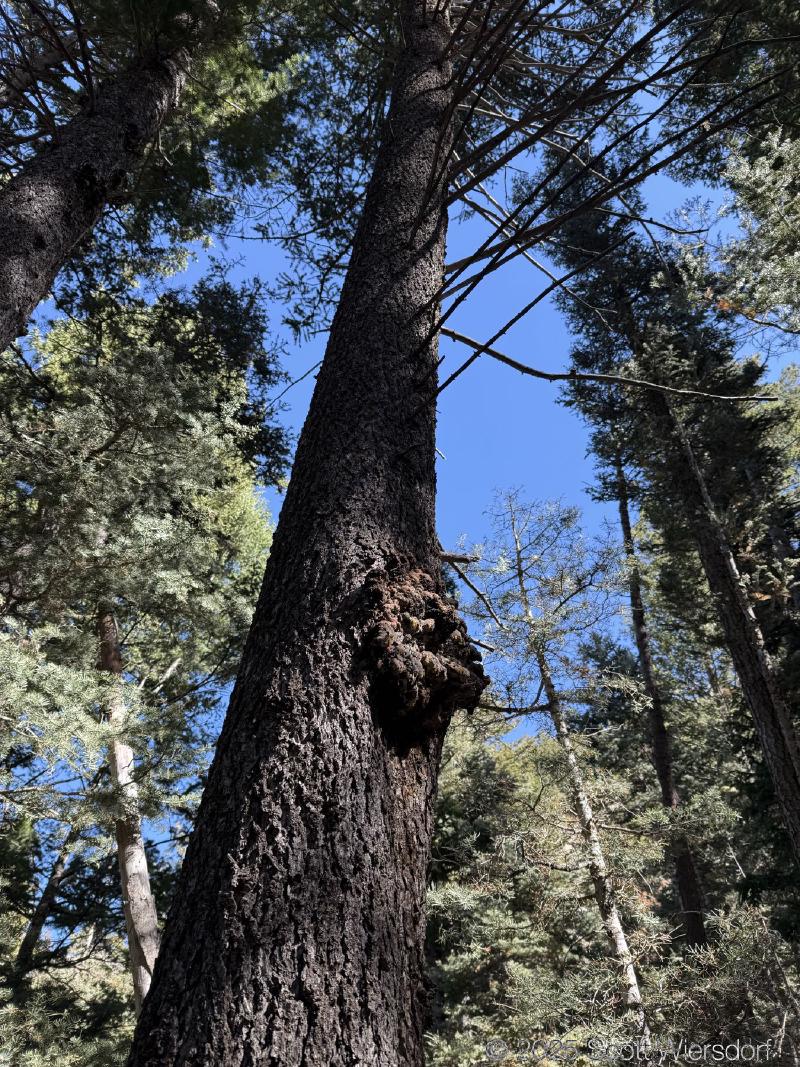 Our ambition was lower than when we were half our ages, and this doesn’t bother us. Our objective was (merely) the 4400 foot elevation gain from the trailhead to the high point on the ridgeline west of the Twin Peaks, which is prominent from the valley floor: