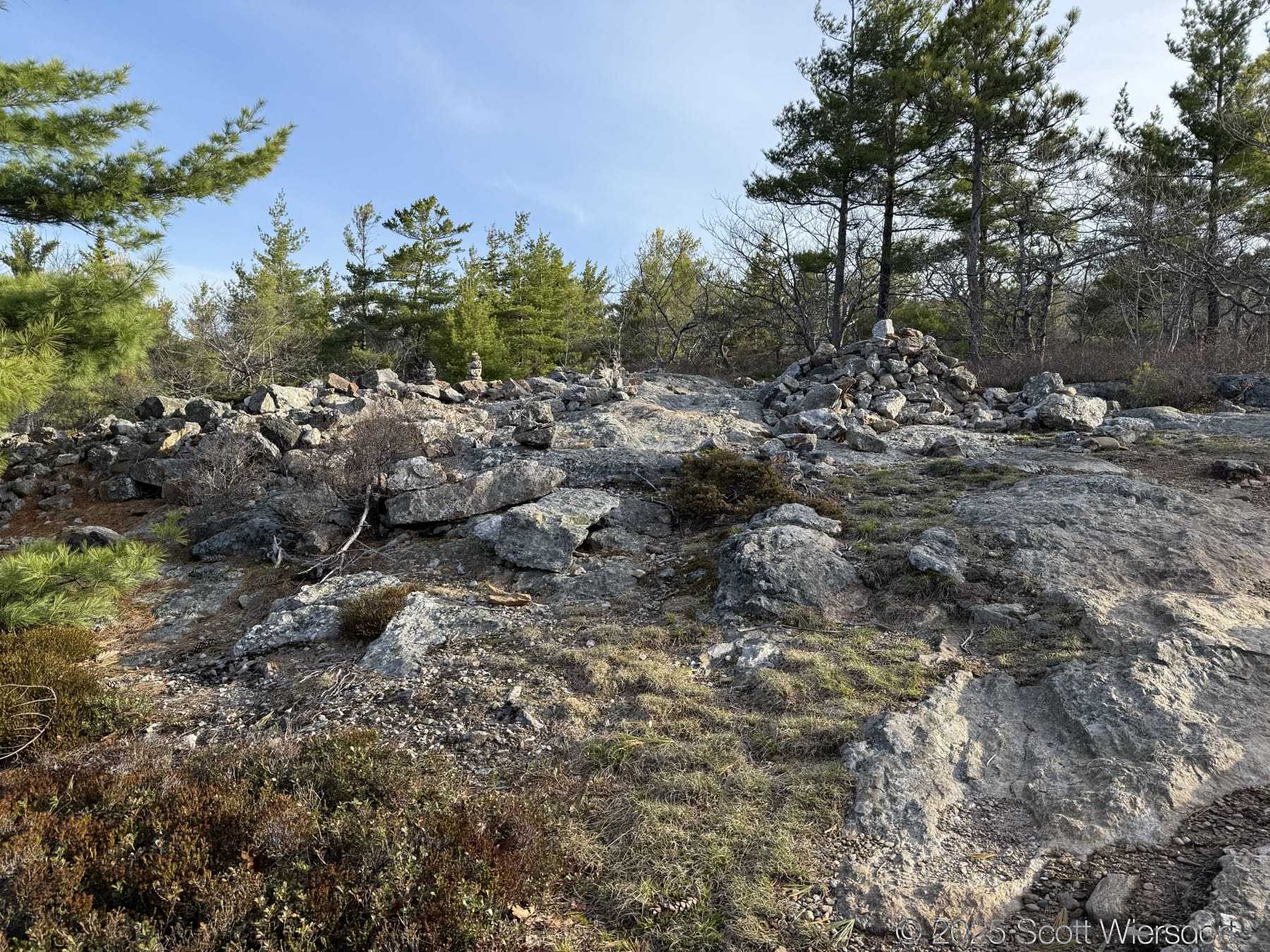 The trail was marked in blue tree tags and blue paint on the rocks and trees.