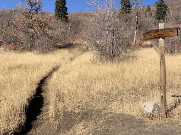At the north east corner of the meadow is another trail sign: